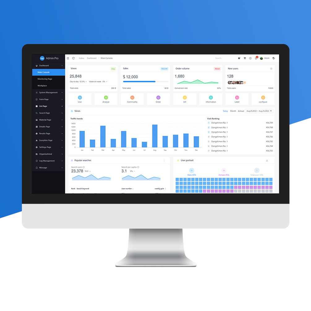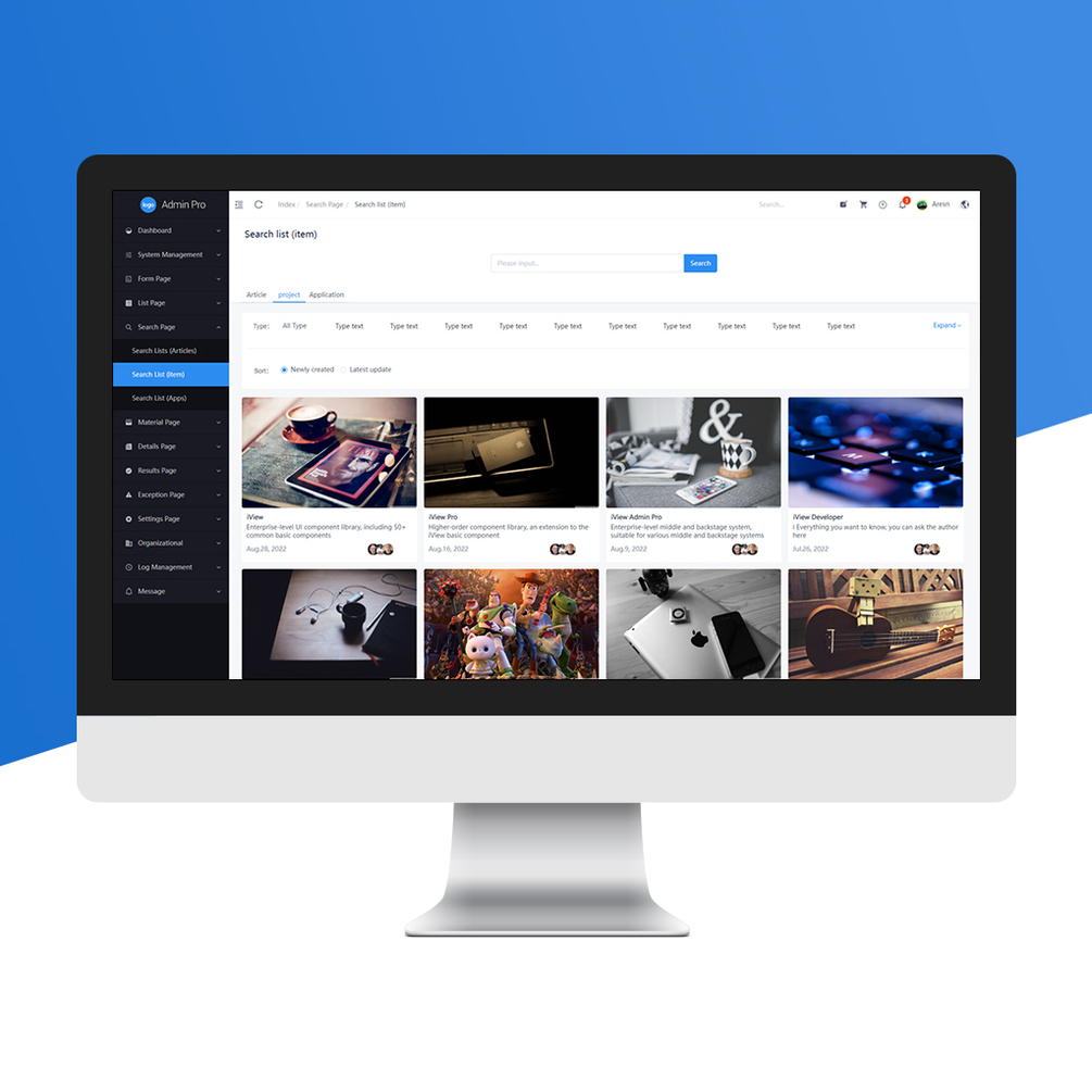 At the same time, because it is a general Backend Template, you can directly apply it to any Backend project. By previewing the address online, you can see that it contains modules such as Dashboard, System Management, Form page, List Page, Search Page, and Material Page, and each module contains multiple sub-pages.